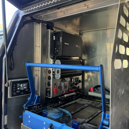 All of our 12 and 24v Systems are wired by our trusted Auto Electricians, JS Auto Electrics in Annangrove. We make removable aluminium wiring panels to house all the components with stainless steel hardware for the best fitting result. The boys there then continue to wire to your vehicle upon install of your toolbox/canopy build.