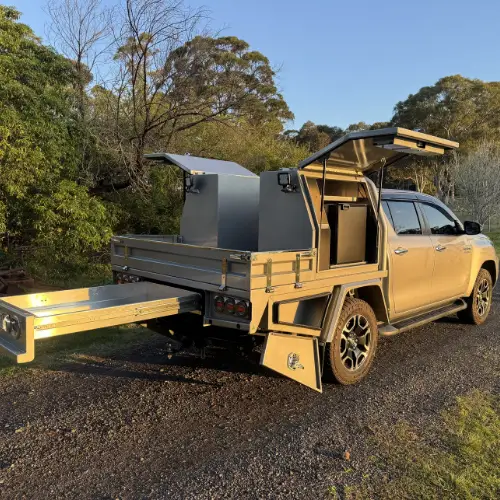 We have our standard aluminium tray and canopy range with optional accesories that is very versatile and well built. If you have specific requirments or a design that you would prefer, we can build a complete custom tray to suit your needs!